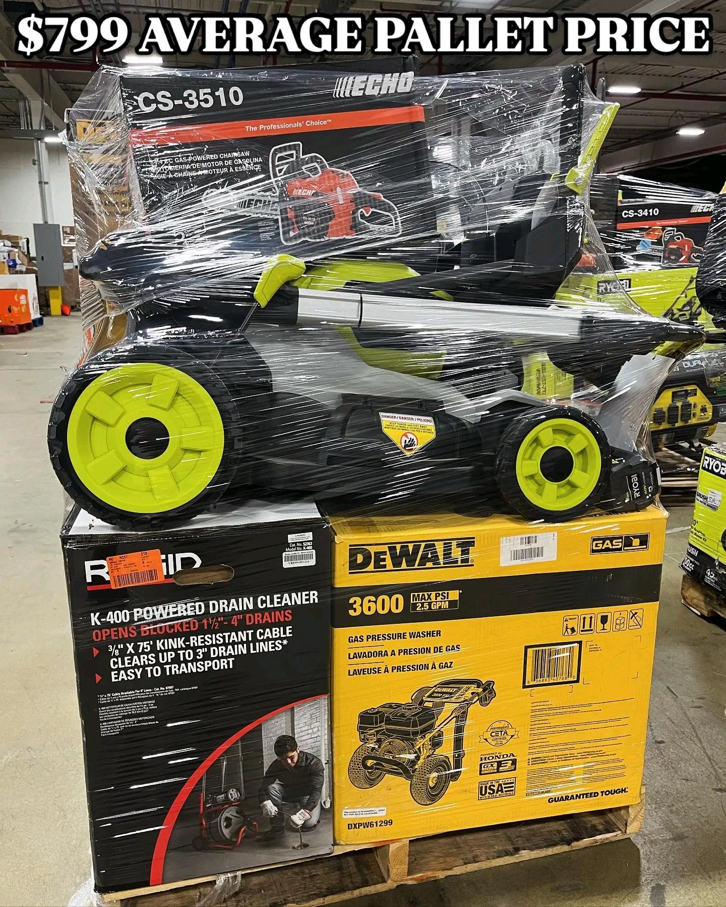 Home Depot Tool Pallets for sale Available in store First come first serve! Brand new Premium tool pallets. Dewalt and Milwaukee tool pallet. Great money makers will not last long! Pallets includes Tools, Hardware & Power equipment! Mowers, chop saws, blowers, whackers, air compressors, gardern equipment, and much more! All your favorite brands! 30 to 48 pieces per pallet